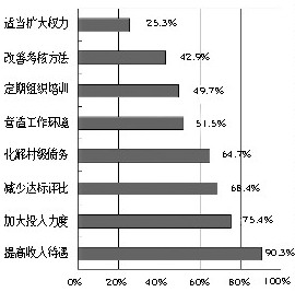 回答结果排前3位的是:工作辛苦报酬低(79.1%),无钱办事、心有余而力不足(76.7%),应付各级政府检查评比(63.1%)。资金紧缺、手中无钱,想办的事办不了,这在新农村建设中具有普遍性。作为村干部来说,既要量力而行,又要想方设法,尽力而为;作为政府来说,既要不断加大财政投入,又要引导社会各界参与新农村建设。至于各种达标评比活动,建议市县政府加强管理,下决心规范和减少各种达标评比活动,让村干部全身心投入新农村建设。