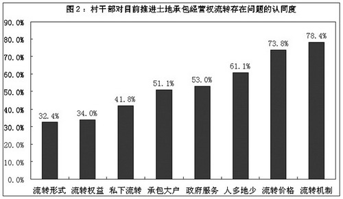 图2:村干部对目前推进土地承包经营权流转存在问题的认同度