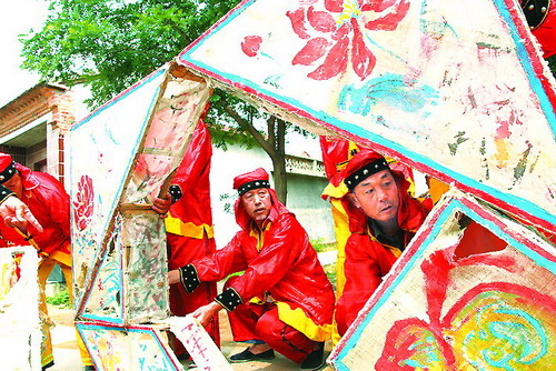 “七巧图”是山东邹平县西董镇于张村老木匠自创的民间舞蹈,道具分别由绘有瓜果花草的两个大三角、两个小三角、一个中三角、一个正方形、一个平行四边形木板组成,至今有近百年的历史。为了保护好非物质文化遗产,邹平