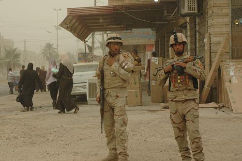 6月28日,伊拉克安全部队士兵在巴格达街头巡逻。根据美伊双方的协议,美军战斗部队将在6月30日前全部撤出伊拉克城镇,伊拉克安全部队将接管安全防务。