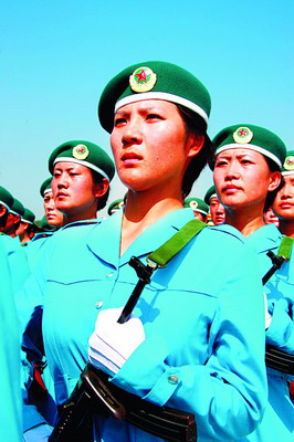 方队休息时,记者找到董玉霞,想聊一聊她的压力。可这位23岁的姑娘却用灿烂的笑容回答说:“我没什么压力啊,只要把动作做到位了肯定没问题。现在我还着急着想早点到天安门前表演呢!”