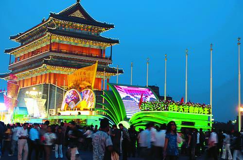 十月五日,游客在天安门广场参观。连日来,天安门广场上摆放的国庆游行彩车吸引众多游客前来参观,广场及周边客流量接近饱和。据北京市交通部门介绍,天安门广场周边地铁车站客流最高增幅超百分之七百。新华社记者金良