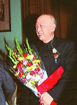 1991年10月16日,80岁的钱学森同志在国务院、中央军委举行的授予他“国家杰出贡献科学家”荣誉称号仪式上。新华社发
