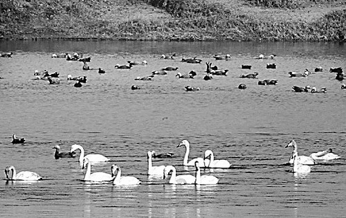 ▲郑州黄河湿地是候鸟的栖息地,每年都有大批越冬的天鹅、野鸭等在这里栖息越冬。