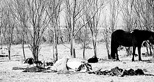 ▲遭到《水浒》摄制组破坏的黄河湿地。来源:重庆晚报