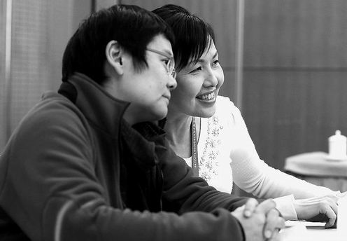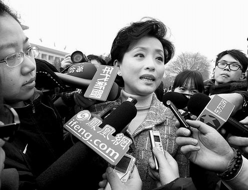 ②在妇女界小组讨论会上,郑?(左)、陈清霞委员热议温总理政府工作报告。