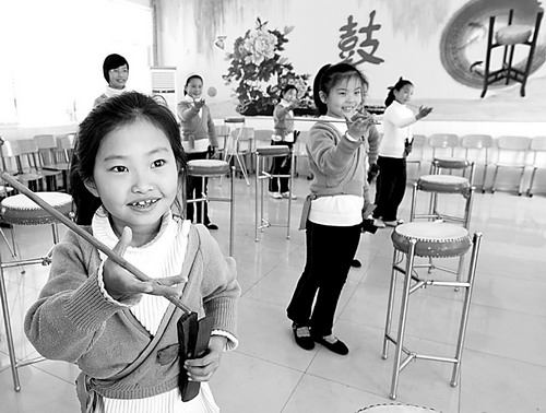 4月23日,邹平县梁邹小学的学生表演京韵大鼓。当日,山东滨州市中小学示范学校“教学开放日”在邹平县举行。在为期3天的“教学开放日”活动中,教师代表500余人将在全市12所中小学交流开展素质教育的经验。