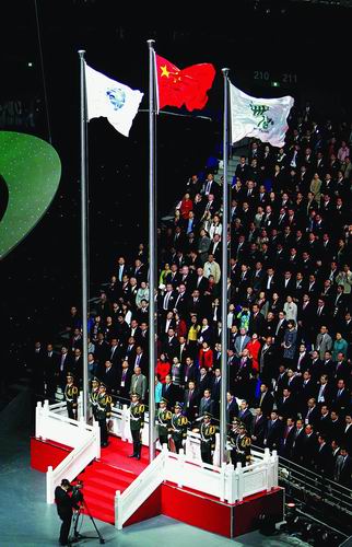 上海世博会开幕式上的升旗仪式。新华社记者凡军摄