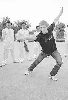图二俄罗斯大学生领略我国武术精髓。傅磊陈江宁摄