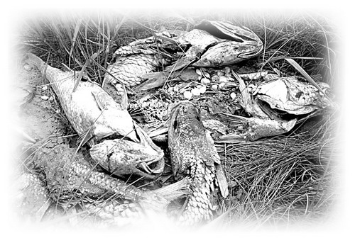 在路易斯安那州的发现之岛上,被油污毒死的鱼被扔在杂草中。该岛已划出一片区域以集中处理收集起来的污泥。新华社发