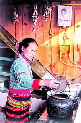 迎着温暖的春风,32户德昂族农民住进了整洁亮丽的新房。我们近日在这里看到,每户砖木结构的楼房为三方一照壁,院心广敞,猪厩、牛厩、厕所一应俱全;宽阔的石板路连接到各家各户整齐的房屋;电力线、自来水管直接入户;家家用沼气烧水煮饭,解决了能源问题,保住了青山绿水,村民与自然更加和谐相处。这是上海市民