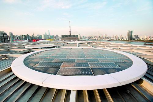 上海世博园区,信息通讯馆楼顶的太阳能电池板。鲁海涛摄