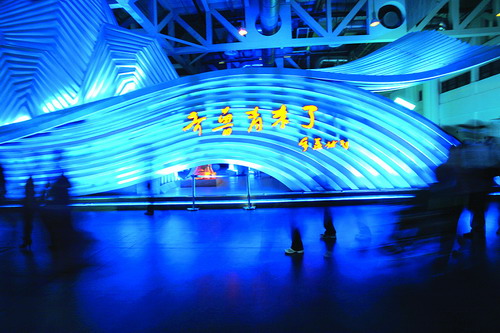 上海世博会山东馆以蓝色为主色调,以国学大师季羡林题