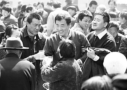图②:《第一书记》剧照。(第二排左三为沈浩,杨立新饰)