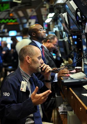 7月16日,交易员在美国纽约证券交易所内工作。由于当天公布的主要公司业绩及经济数据均让市场失望,纽约股市16日大幅下跌,截至收盘,道琼斯指数下跌了260多点,三大指数跌幅均超过2%。新华社发