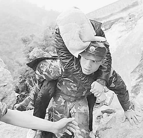 我国目前的应急管理体制在有效应对突发事件,保障人民生命财产安全和维护社会安全稳定中发挥了重要作用。图为2008年5月13日,救灾官兵在北川县冒着塌方和余震的危险抢救受伤百姓。新华社记者杨磊摄