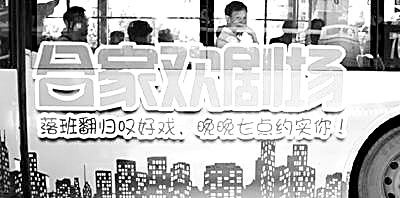 ▲广州电视台在公共汽车上做的粤语广告,意思是:“下班回家看好戏,每晚7点约定你”。邓圩摄