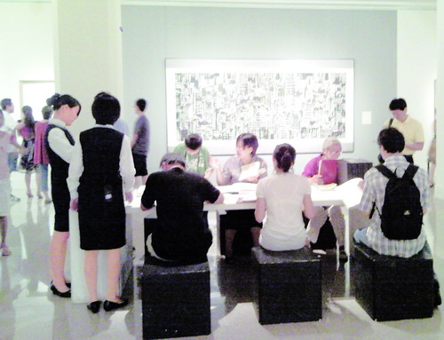 今天,在中国美术馆举办的“不负丹青――吴冠中纪念特展”,吸引了很多青少年前来临摹学习。图为部分参展者饶有兴味地翻阅中国美术馆提供的相关画册资料。本报记者单三娅摄