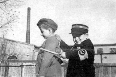 隔离区里的犹太儿童在玩警察游戏。该照片摄于一九四三年。