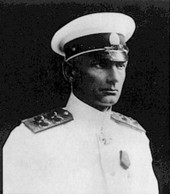 当时,各国科学家对于人迹未至的北极地带发生了极大兴趣,纷纷组织探险队前去考察。1899年底,高尔察克收到俄著名极地考察家托尔男爵的邀请书。邀请他作为水文学家参加北极探险队。1900年夏,“曙光”号破冰船载着托尔的考察队起锚,向新西伯利亚群岛进发。1902年春,考察队终于到达新西伯利亚群岛,但继续往北的航路被冰群阻断了,高尔察克等人只好循原路返回。1906年,高尔察克的学术著作《喀拉海和西伯利亚海的积冰》一书荣获俄国皇家地理学会的最高奖赏―大君士坦丁金质奖章。1910年,他随“瓦伊加奇岛”号破冰船在远东海区航行,绘制地图和航海图志。后来,人们正是根据这些航海图志去开辟北冰洋航道的。战火风云