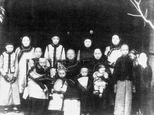 巴金幼年时的全家照。外婆抱着巴金(左三)