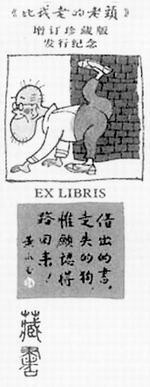 与狗熟了,在狗的习性中黄永玉感受着幽默。他曾设想为狗设计一个撒尿动作的邮票,未果,但仍兴致勃勃。他说,一个这么大的国家,要多一点儿幽默。明年农历丙戌年将至,黄永玉在增订珍藏版《比我老的老头》中,亲绘狗年藏书票一枚,按传统技法用宣纸手工印制,随书发行。