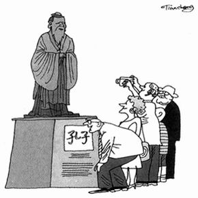 在德国柏林得月园的入口处,矗立着一尊孔子的塑像,塑像基座上刻着孔子的名言:“己所不欲,勿施于人”。中国的儒家文化正在走向世界。(《文汇报》8.31)