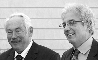 德国科学家彼得・格林贝格尔(左)与法国科学家阿尔贝・费尔
