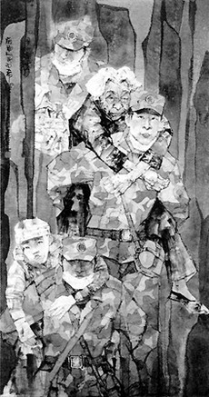 汶川地震发生后,上海中国画院的画家们连夜画出了一系列抗震题材作品,描绘了灾难中悲怆、拯救、感恩的场面。(《新民晚报》五・二十四)