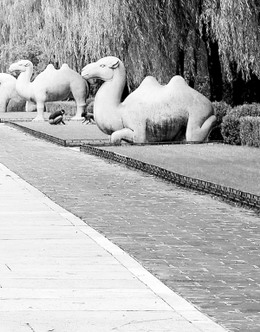 一个景点,由石碑坊、大红门、碑楼、石象生、龙凤门等组成。这次找到的六张老照片中摄有碑楼、骆驼石兽、麒麟石兽、文武大臣等文物。记者看到,这六张老照片都带有日文注释,如骆驼石兽照片注释写道:“陵城中24个石兽列于两旁,有马、麒麟、象等,种类各异,或蹲坐,或站立,左右各一,成双成对。和石人一起守护着墓陵,乃取帝德长久、及于兽身之意吧。在这草原之间、山陵的背景之上,出现如此伟大的大理石雕刻,何等美观!”