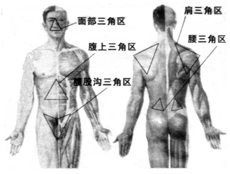 北京中医医院宋孝瑜主任医师介绍,在人体腹上、面部、膀胱等20多个神秘的三角区内,集中了最重要的脏器、血管、神经、肌肉、筋