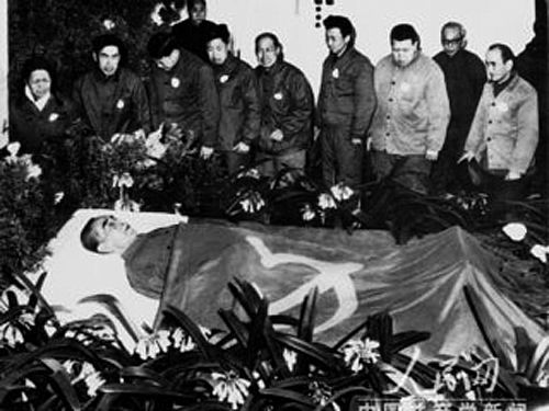 朱师傅非常熟悉周总理的发型,没用多少时间就理完了发,此时才显露出总理平时的面容。我和马大夫商量,并传达邓姨对总理整容的要求。马大夫在整容方面是个高手,他从解决凹陷部位开始,用棉花垫高眼球和两颊,边做边征求大家意见,直到大家满意为止。然后是面部着色。考虑到灯光的强弱与着色的关系很大,遗体面部着色后不能变动,而灯光的变化很大,所以着色要适合灯光变化的要求,经过反复修改才最终完成。最后进行全面整理,直到覆盖党旗,把遗体安放在花丛中为止。