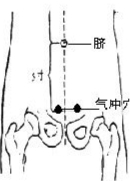 气冲穴,是冲脉气血的一个出口。在肚脐下5寸、旁开2寸的地方(左右各一个,如右图)。在此穴位的下边,则可以摸到一根跳动的动脉。中医认为“气为血之帅,气行则血行”,按摩这个穴位,可以引气下行,使气血输送到腿脚上,起到暖腿脚的作用。做法是:先按揉气冲穴,后按揉动脉,一松一按,交替进行,一直按揉到腿脚有热气下行的感觉。