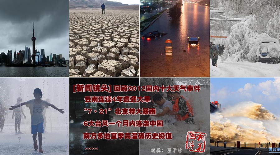 新华网沈阳1月15日电(记者徐扬)中国气象局14日在沈阳发布了“2012年国内十大天气气候事件”,7月21日北京特大暴雨居首。2012年国内十大天气气候事件分别是: