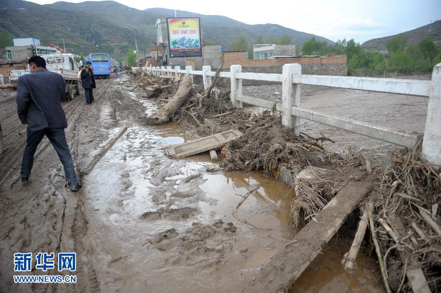耳阳河在茶埠镇从国道212线的一座桥下流过,但这座桥不仅不足10米高,而且杂物堵塞桥洞,无法下泄的耳阳河扭头袭击了茶埠镇,造成重大损失(5月12日摄)。 45人死亡、14人失踪,全县35.8万人受灾,直接经济损失68亿元——甘肃“5·10”特大冰雹山洪泥石流灾害给定西市岷县带来巨大损失,引发全国关注。大部分灾区当日降雨量仅30毫米,一场冰雹大雨为何造成如此重大的人员伤亡?为弄清灾情和原因,“新华视点”记者深入岷县实地调查。新华社记者聂建江 摄
