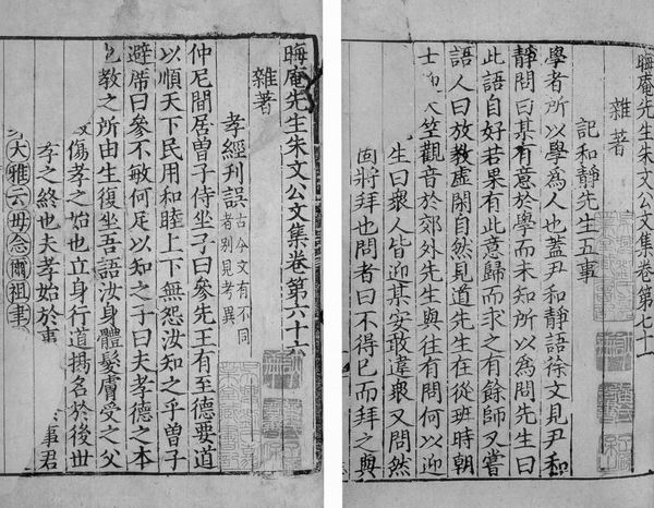 《晦庵先生朱文公文集》是宋咸淳元年建宁府建宁书院刻的递修本。