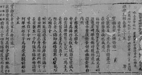 开元寺本的《毗卢藏》相对来说更重要。因为它前面有一个题记下的落款,从右数小字起第3行,说明了大藏经印版第五百余函,“时崇宁二年二月某日谨题”,有确切的年款――崇宁二年。中国古书流传到今天,宋本有北宋确切纪年的书很少,就是佛经之外的宋版书中也没有几部。日本学者认为,我们今天著录的北宋本书实际大多都是南宋本。告诉大家,带有北宋年款的书,今天能够见到的,基本上就是佛经,而以崇宁藏为主。但是崇宁藏到现在为止,不管是国内国外,没有任何一个馆存有全本,都是零本。这一件拍到了17万。