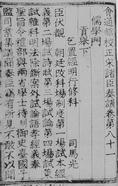 《会通馆校正宋诸臣奏议》存两卷。它是中国活字本流传最早的本子,明弘治三年(1490),由弘治年间的一个大财主华燧印的。这个印本很有名气,印得模模糊糊的,深浅不一。这恰恰是活字本的标志之一。它不能像木刻版那样把字面修得十分平整,印面不平致使印出的字深浅不一。当初这部书出了50部,流传确实少。在此之前,我们还没有发现活字本的实物。韩国流传的活字本比弘治三年要早,争论开来我们底气差一些。这恰恰给藏书家一个重要使命,就是从历史上发掘出前人没有注意到的东西,通过它来印证学术史。这是藏书最重要的一个价值。