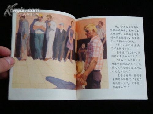 这连环画里有一个排着队卖血的细节,就像传统笑话里说的农民想象自己当了皇帝以后会天天吃糖饼一样,这大约也是出于当时国人自己的想当然,将自己的国情照搬到了国外。西方国家(约翰的名字和他的身材与黄头发都明确地将其籍贯指向了欧洲或者北美的资本主义国家)的血液采集的制度早就已经实现了如今在我们国内刚刚推广开的无偿献血。那排着队被血霸领着去卖血的悲惨,我们这里上演得最多;即使到了今天,这种现象也没有绝迹,而它的恶果――艾滋病――也还后患无穷。