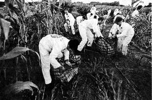 | 绿色和平组织的人员在破坏种植转基因作用的田地 |