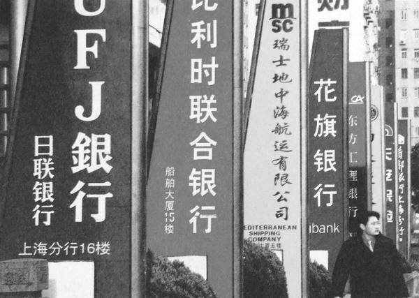 浦东陆家嘴金融区林立的外国银行。中国成为全球金融投资商趋之若骛的地方。