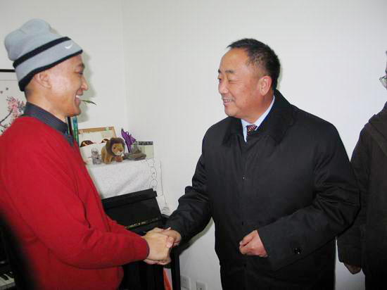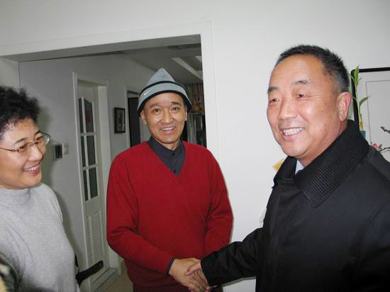 苟天林总编辑与孟二冬教授及家人亲切握手。