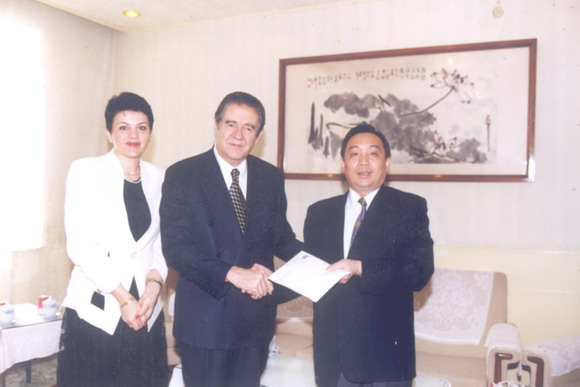 1999年7月14日,光明日报总编辑王晨会见塞尔维亚大使。