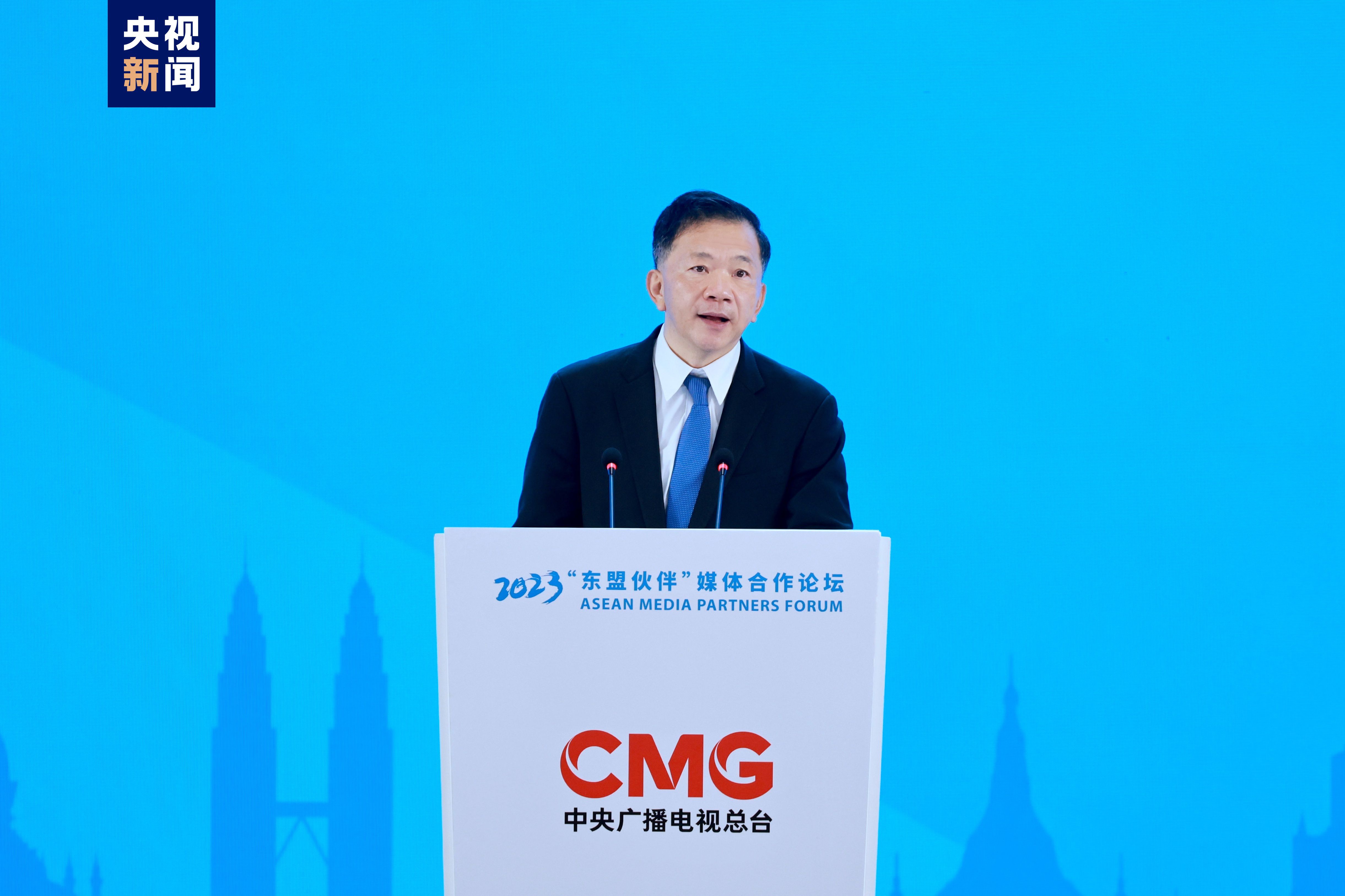 泰国副总理威萨努·科岩,柬埔寨新闻部大臣乔干那烈发表视频致辞。中宣部副部长、中央广播电视总台台长慎海雄,广西壮族自治区党委书记、自治区人大常委会主任刘宁出席并致辞。来自中国和东盟国家的200余位媒体人士、国际组织代表和专家学者以线上线下结合的方式,围绕“创新·携手·未来”主题展开深入对话交流,为构建更为紧密的中国—东盟命运共同体贡献智慧和力量。