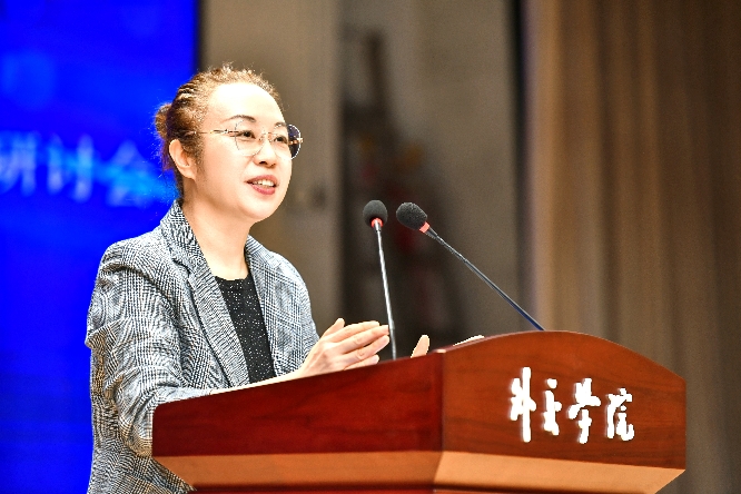 外交部政策规划司白洁参赞作主旨报告。主办方供图