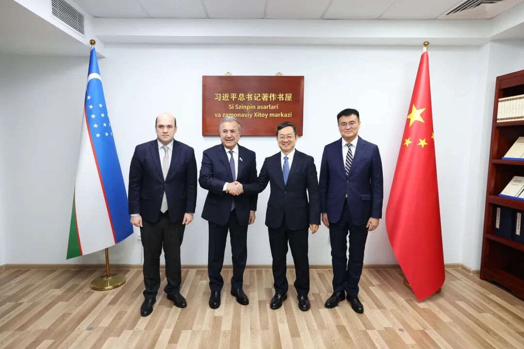 中国社会科学网塔什干讯(记者 褚国飞 王建峰)当地时间1月29日,“习近平总书记著作书屋”在乌兹别克斯坦首都塔什干举行揭牌仪式。中国社会科学院院长高翔和乌兹别克斯坦最高会议参议院第一副主席、世界经济与外交大学校长萨迪克·萨法耶夫分别致辞,并共同为书屋揭牌。中国驻乌兹别克斯坦大使于骏、乌兹别克斯坦世界经济与外交大学第一副校长阿克拉姆·乌马洛夫等嘉宾出席揭牌仪式。